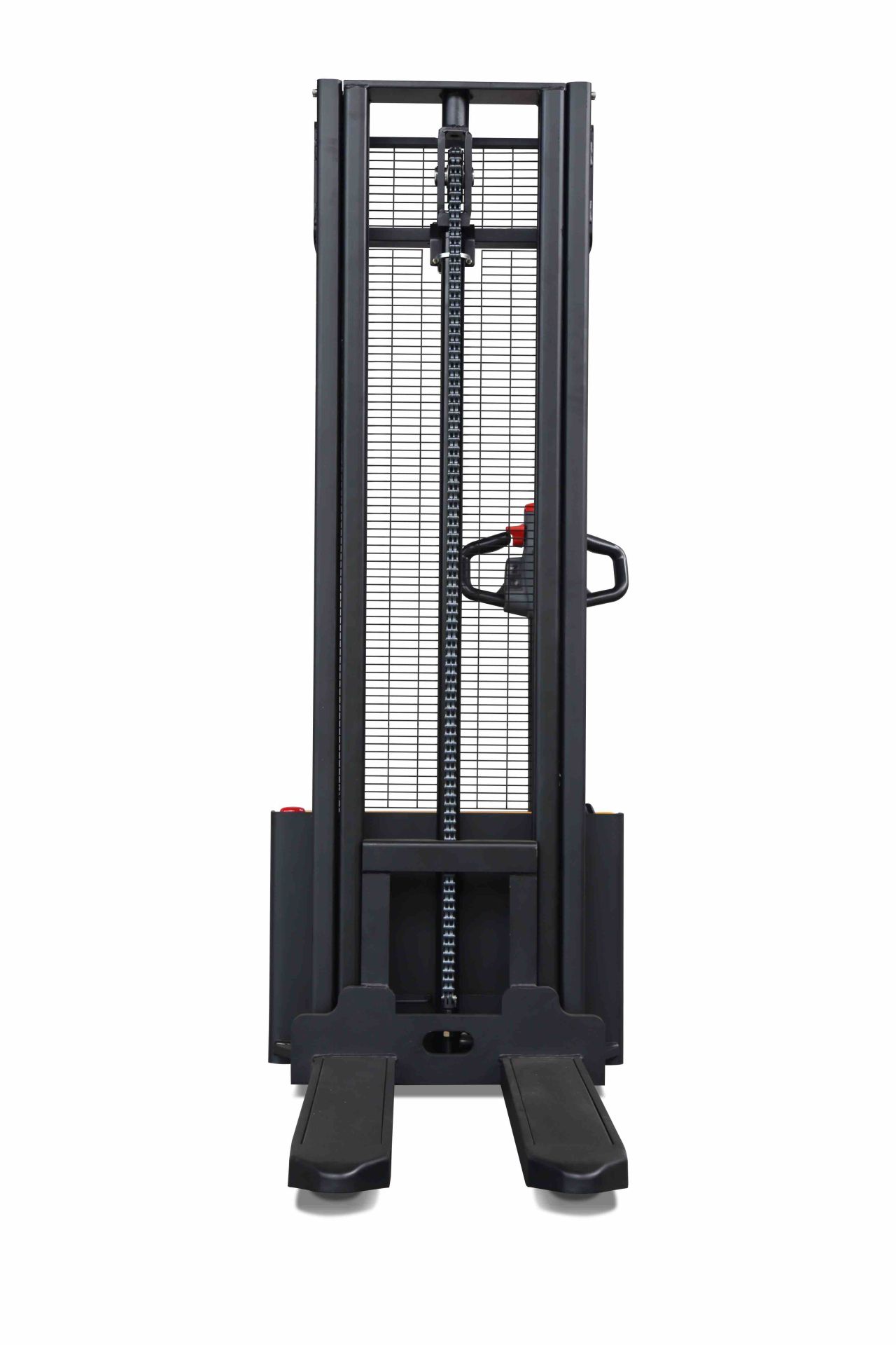 Dank wartungsfreier AGM-Batterien (Blei-Gel) und integriertem Ladegerät lässt sich der Stapler bequem an jeder 230V-Steckdose aufladen – so ist er stets einsatzbereit.