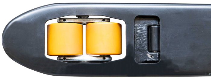 Der integrierte Upright-Modus ermöglicht das Fahren mit senkrecht gestellter Deichsel. Durch Gedrückthalten der Schildkröten-Taste kann der Hubwagen auch in besonders engen Bereichen sicher bewegt werden – ideal für Aufzüge, LKWs oder schmale Kommissionierzonen.