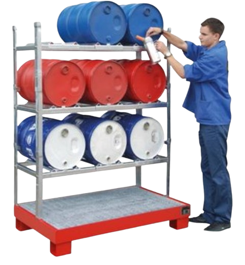 Unsere Stapelgestelle vom Typ AG 60-3 wurden speziell für die liegende Lagerung oder das Abfüllen von 60-Liter-Fässern entwickelt. Sie bieten eine ideale Lösung für eine platzsparende und sichere Aufbewahrung von Fässern und ermöglichen eine effiziente Handhabung. Die Gestelle zeichnen sich durch ihre hohe Stabilität und Belastbarkeit aus, sodass sie den Anforderungen in unterschiedlichen Lager- und Produktionsbereichen problemlos gerecht werden.