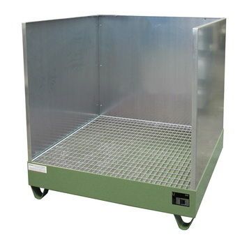 Unsere Auffangwannen vom Typ AW/SW sorgen für ein sicheres Handling beim Abfüllen, Befüllen oder bei der Reinigung von ölverschmierten Teilen. Zudem dient es der Lagerung von max. 10 Fässern á 200 Liter oder max. 3 Containern (IBC) á 1000 Liter und ist auch mit 60 Liter Fässern und Kleingebinden kombinierbar. Die Konstruktion besteht aus 3 mm dicken Stahlblech mit einer Unterfahrhöhe von 100 mm. Serienmäßig vorhanden sind ein verzinktes Gitterrost mit einer Tragkraft von 1000 kg/m² und eine Spritzschutzwand 3-seitig aus verzinktem Blech mit einer Höhe von 1000 mm.