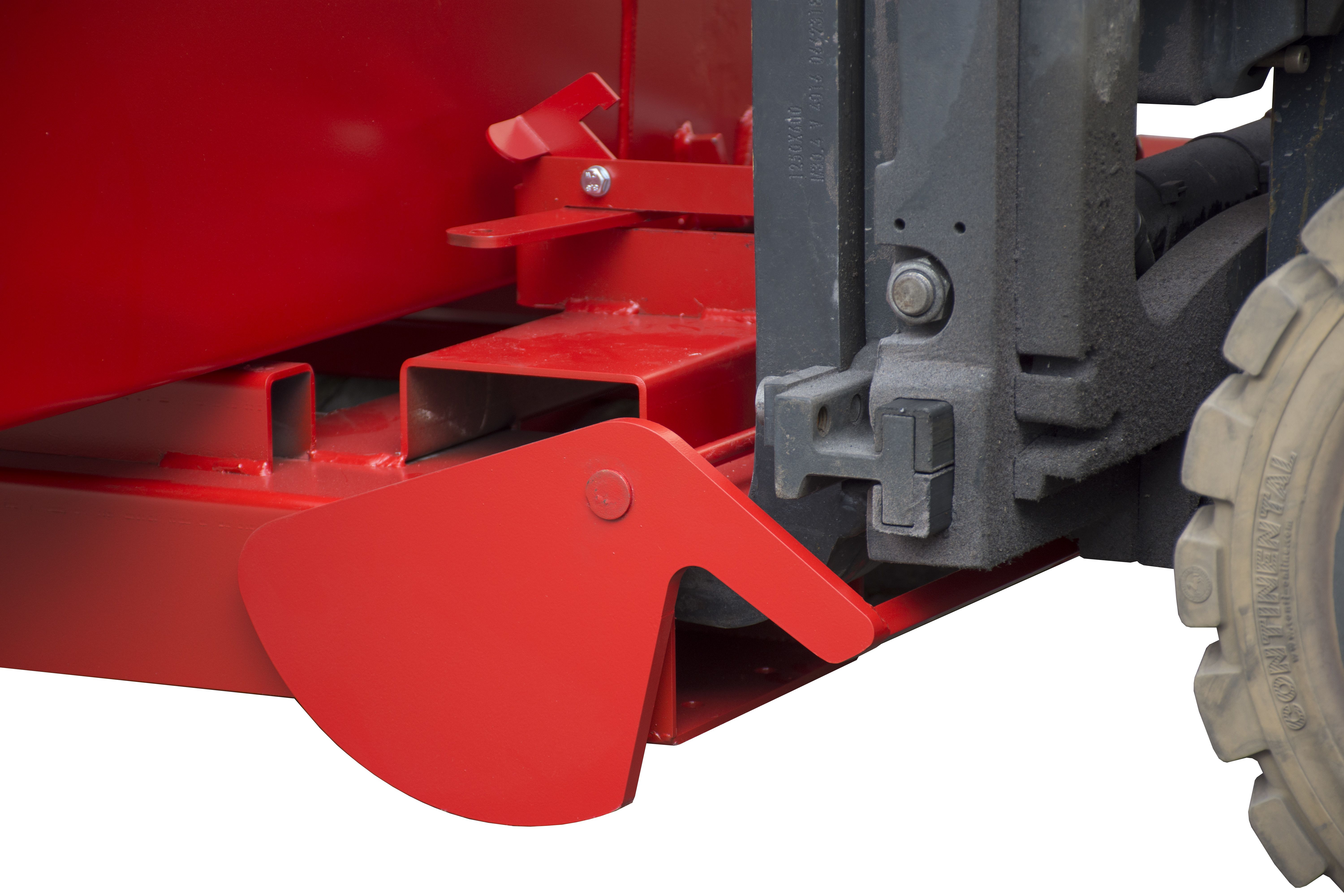 Der Kippbehälter Typ A4 kann vornüber gekippt werden. Für ein versetztes Abkippen stehen hier drei verschiedene Entriegelungspunkte zur Verfügung. Die Aufnahme erfolgt bequem und einfach über die Gabelzinken in die dafür vorgesehenen Einfahrtaschen. Eine Sicherung schütz vor unbeabsichtigtem Abrutschen des Behälters von den Zinken, oder vor ungewolltem Auskippen. Unser Kippbehälter Typ 4A überzeugt mit einem günstigen Lastschwerpunkt und einem stabilen Grundrahmen. Das Wannenblech mit umlaufenden Randprofil runden die Vorzüge dieses Anbaugerätes ab.