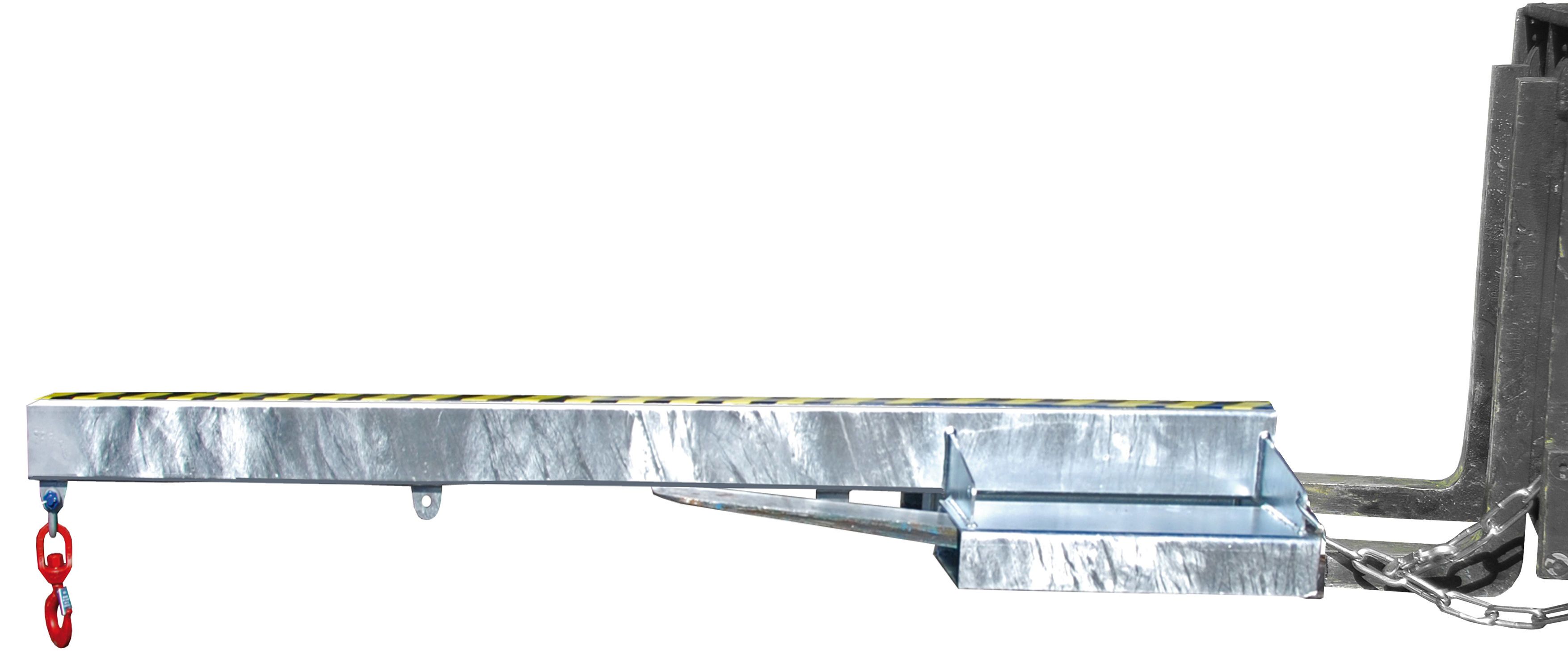 Unsere Lastarme Typ LA/LAT vergrößern die Reichweite des Gabelstaplers. Er besteht aus einer Stahlkonstruktion und ist auch für Pratzenstapler geeignet. Dazu schützt eine Kettensicherung gegen unabsichtiges Abrutschen und ein Wirbellasthaken ist vorhanden.