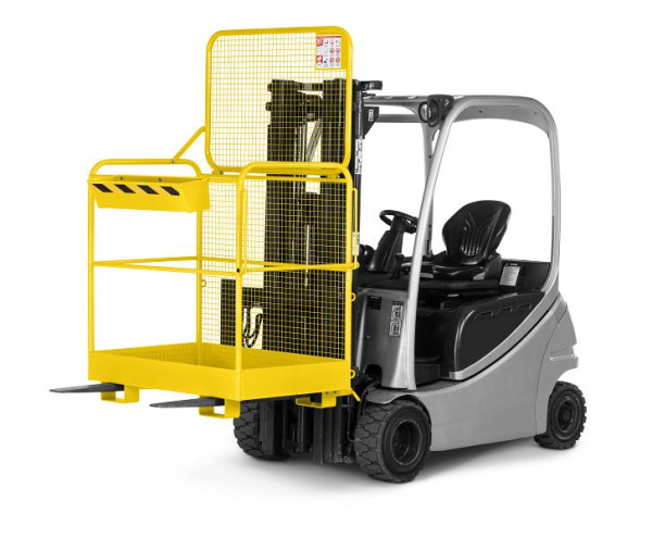 Der Sicherheitskorb für Stapler bietet höchste Sicherheit für bis zu 2 Personen bei den Reparaturarbeiten. Die maximale Tragkraft liegt bei 300 kg. Die Serienmäßige Werkzeugablage bietet genügend Platz für das Werkzeug während der Wartungsarbeiten.